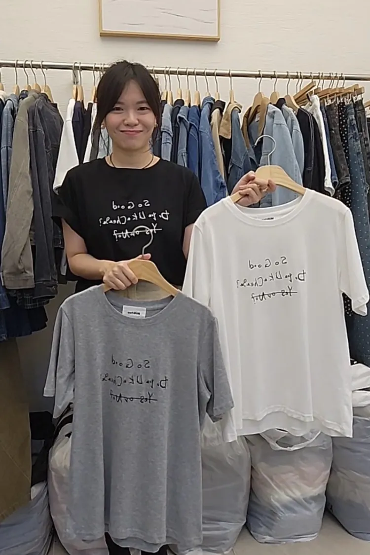 Ab41刺繡蜜桃絨短T