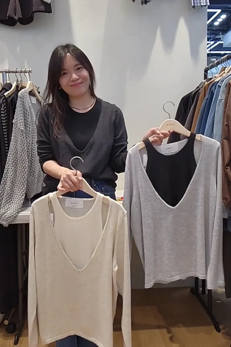 Ah66假兩件V領羊絨針衣