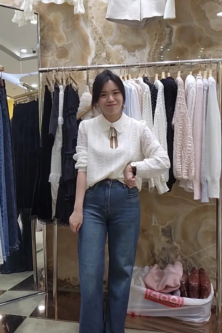 Cg35小領別針蕾絲上衣