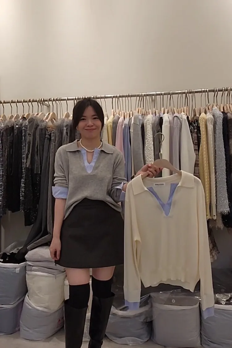 Ci34開領撞色假兩件衣