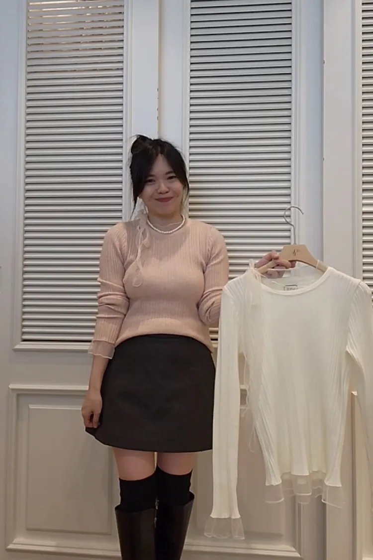 Cj04羊絨網紗坑紋衣