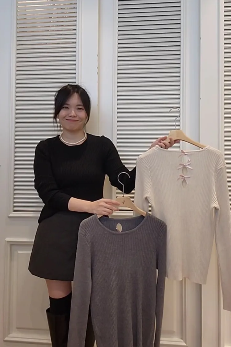 Cj07坑紋後蝴蝶結上衣