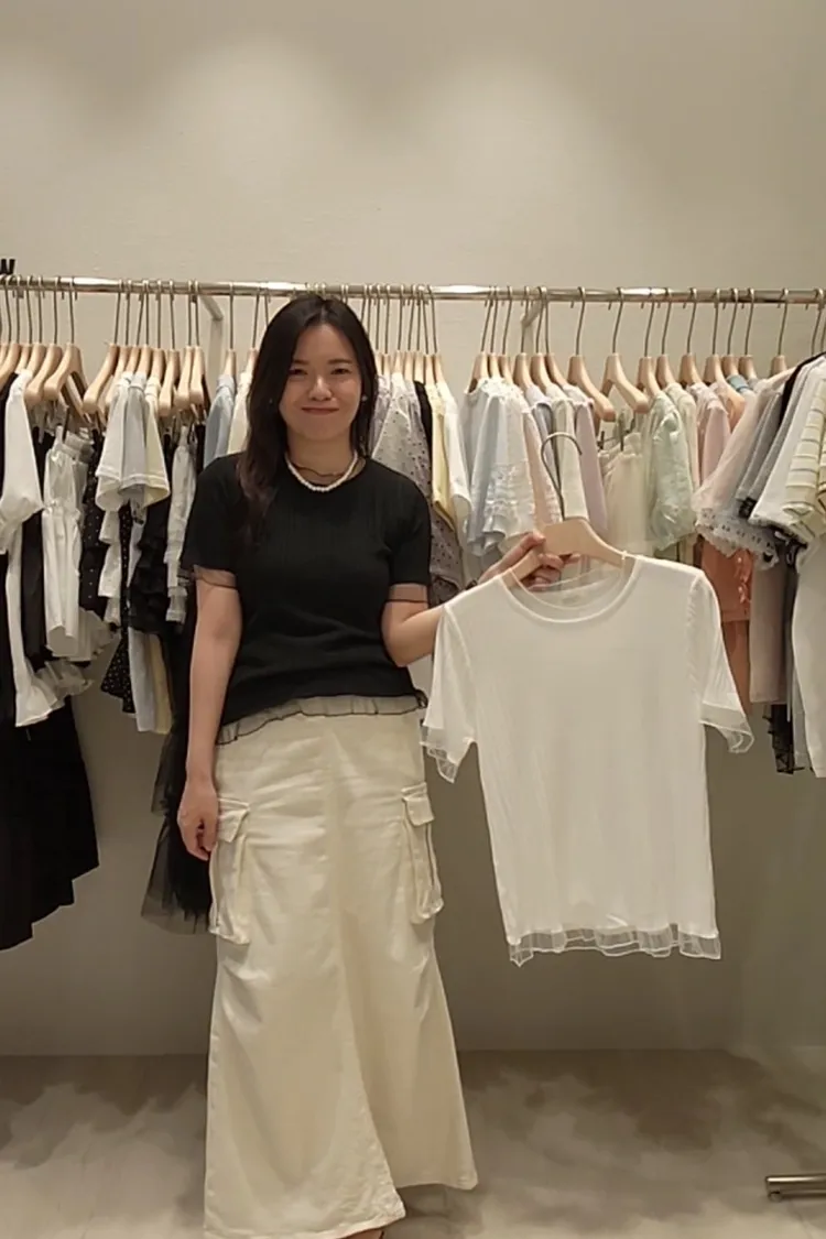Db03坑紋拼雪紡紗上衣