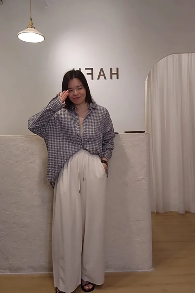 Ha05皺皺格子襯衫