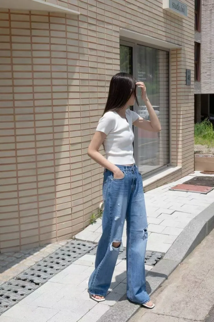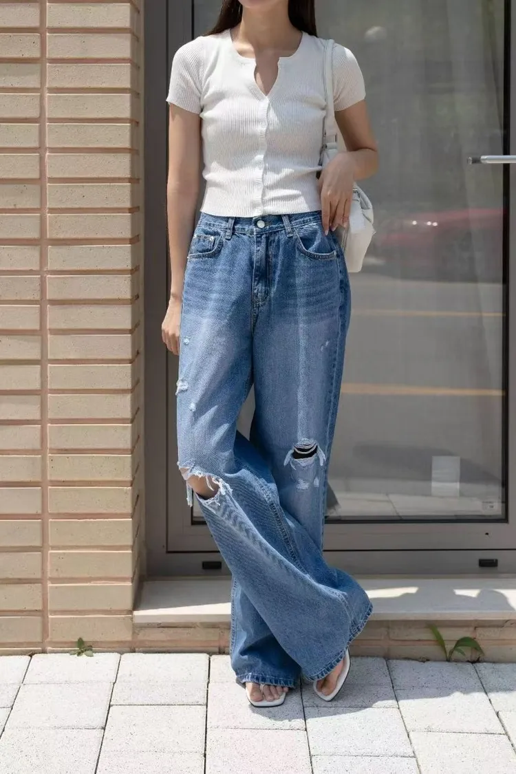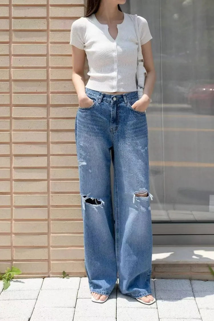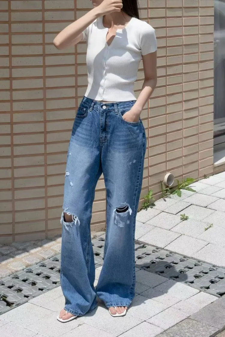 Ha22抓破牛仔長褲